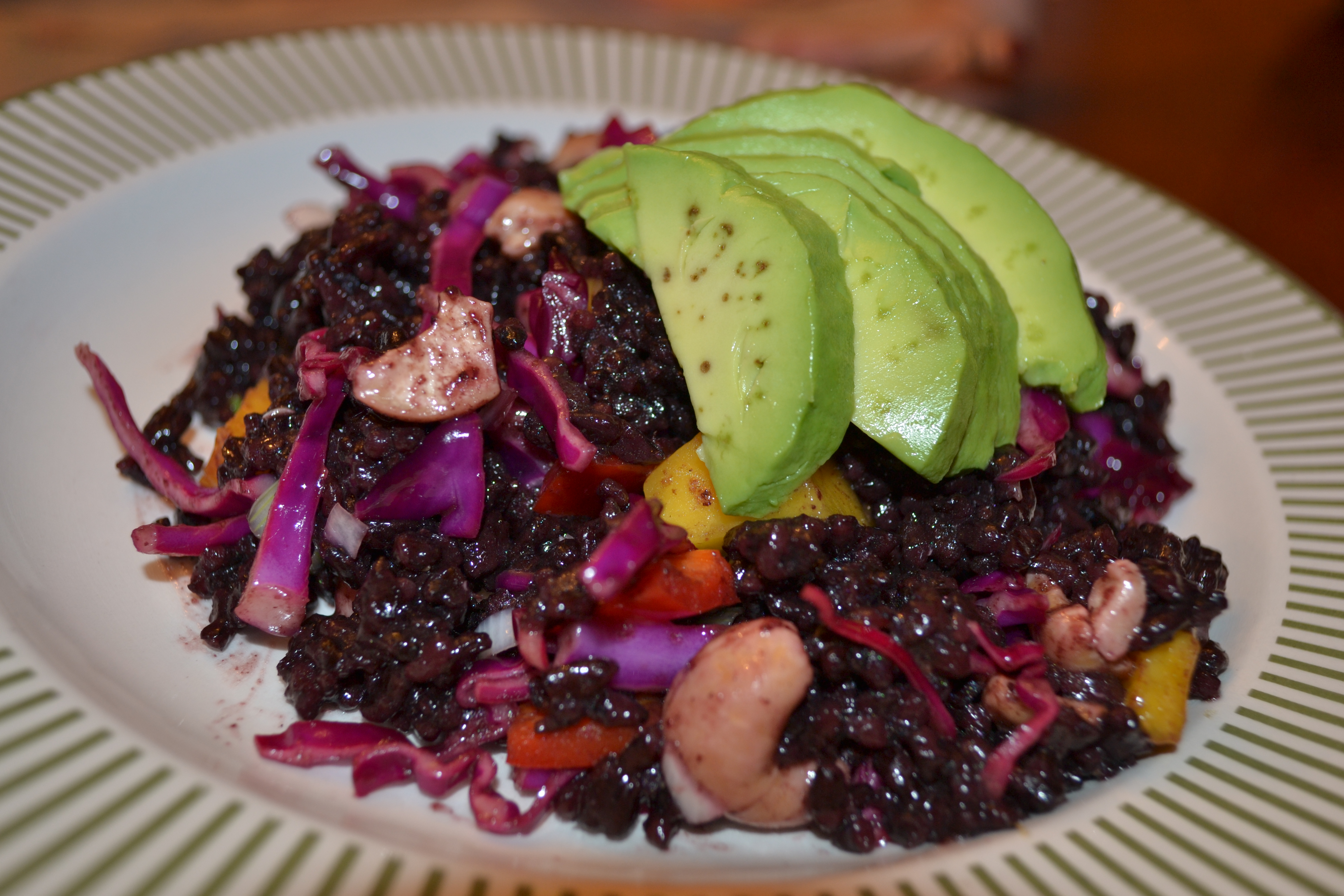 2 cups cooked forbidden rice (while warm I melted some coconut oil over it)