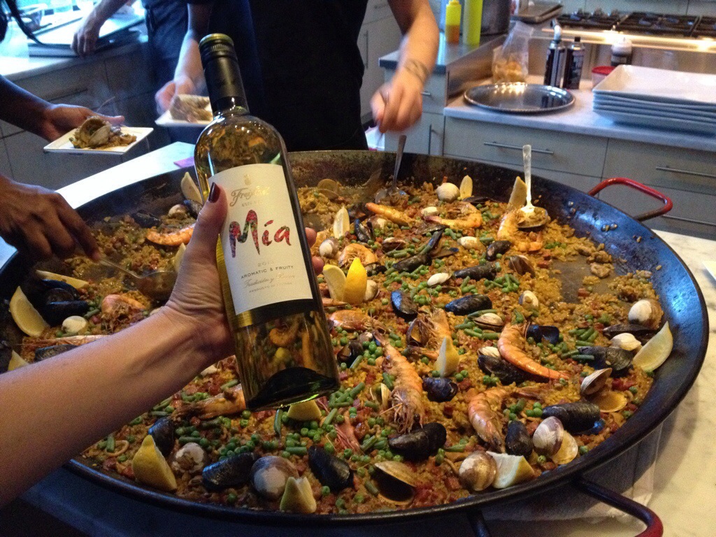 As guests arrived, tapas were passed. With the Spanish wines, Spanish fare was a given. Eva Bertran of Freixenet and Daniel Olivella of Barlata have a friendship which has spanned decades, so even on his birthday, he provided a beautiful spread. Crostini with Octopus and fennel, Iberica and micro greens, Chorizo, prawns, and wild mushroom with pine nuts. Again, I cursed this shellfish allergy, but what I could have was delicious. My husband oohed and aahed and claimed it was the best paella he’s had. I have never seen a Paella pan like the Paella pans Chef Olivella had at this party. What came out of them had to be fantastic.