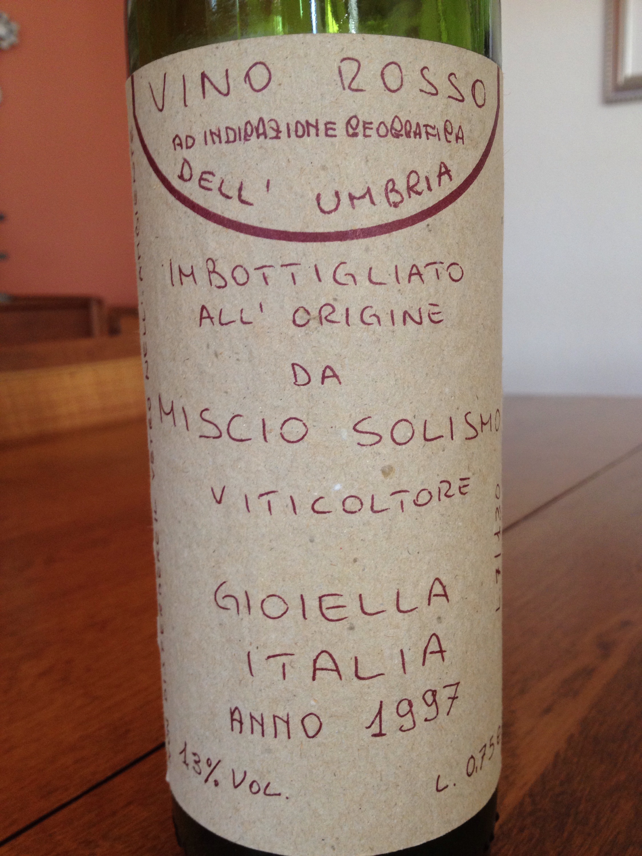 I had brought it back from my trip to Italy in 2000. A small producer, Francesco Mollaioli, I found on the streets of Assisi. Even though I didn’t know too much about wine at the time, this wine had a story. I’d saved it for the right occasion, I couldn’t easily replace the bottle. Cover blown.