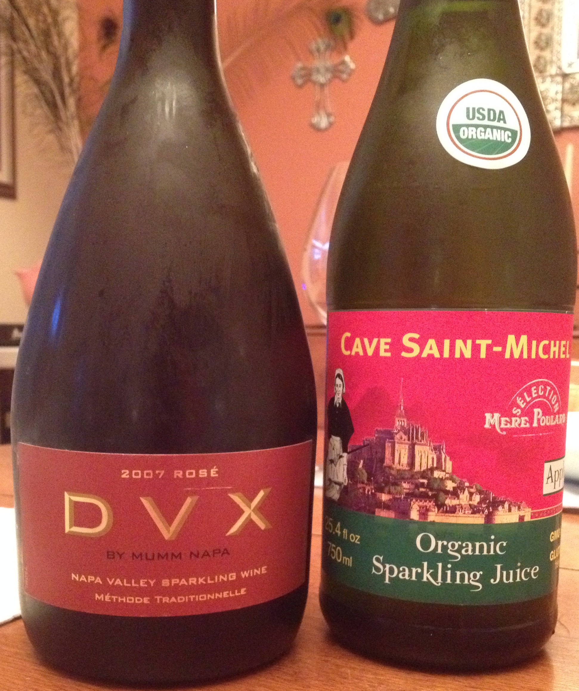 I planned their favorites: grass-fed steak, fingerling potatoes, a salad. I planned on opening one of our “special” bottles of Cab and bought a bottle of 07 Mumm DVX to begin the night. But as I was prepping dinner, I made a change of plans that required a change of wines. Gorgonzola sauce.