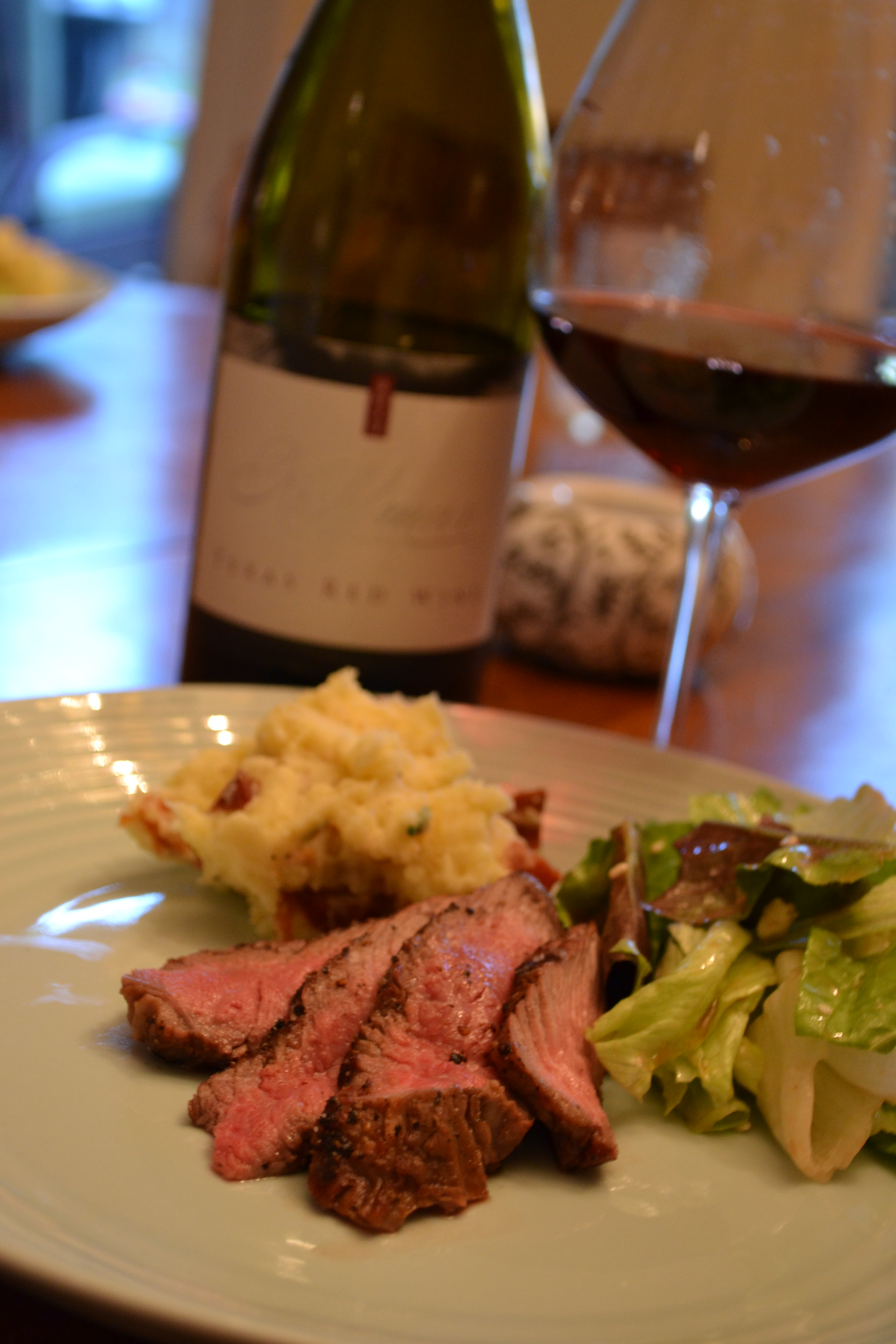 We grilled some grass-fed strips. I had leftover bacon from the morning so I tried a new play on potatoes. I’ll call them Baked Potato Mashers.Even my daughter who is naturally averse to carbs (whose kid is she?) loved them. Add a salad with blue cheese vinaigrette and we had a meal that made all of us smile.