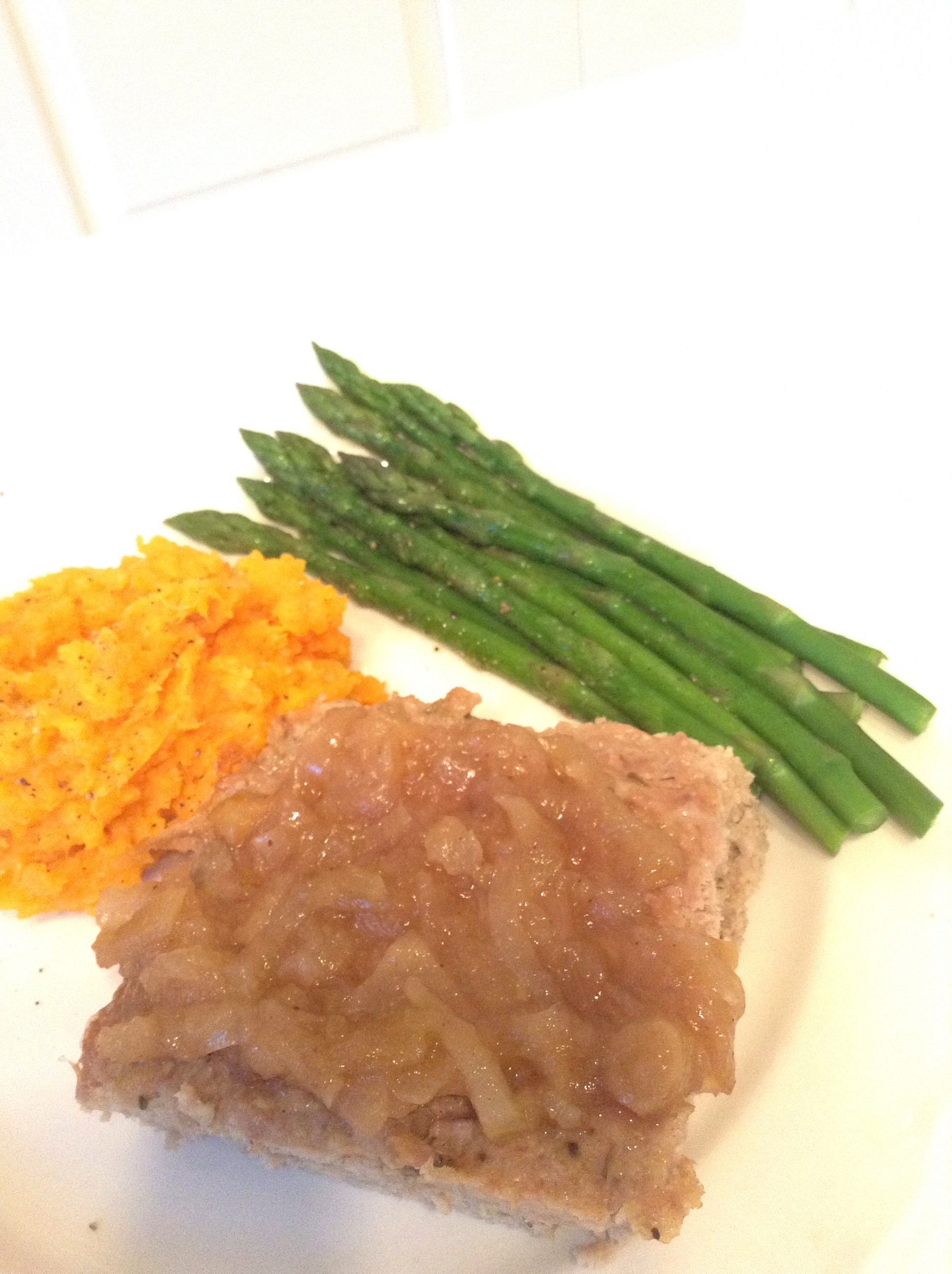 I served it on top of a turkey meatloaf with asparagus and horseradish sweet potatoes. Delicious. It would have been great with the Beaujolais.