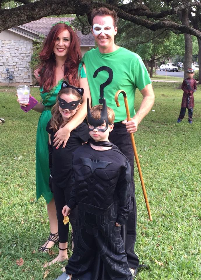 Wielding a hot glue gun and green fabric, I channeled Batman’s villains to counter my heroic son. Since “Batman” wanted muscles, I reluctantly bought them. Catwoman and The Riddler were a breeze, and the “Mom” version of Poison Ivy was a fun challenge. We were ready to hit Gotham City, or rather the Block Party.