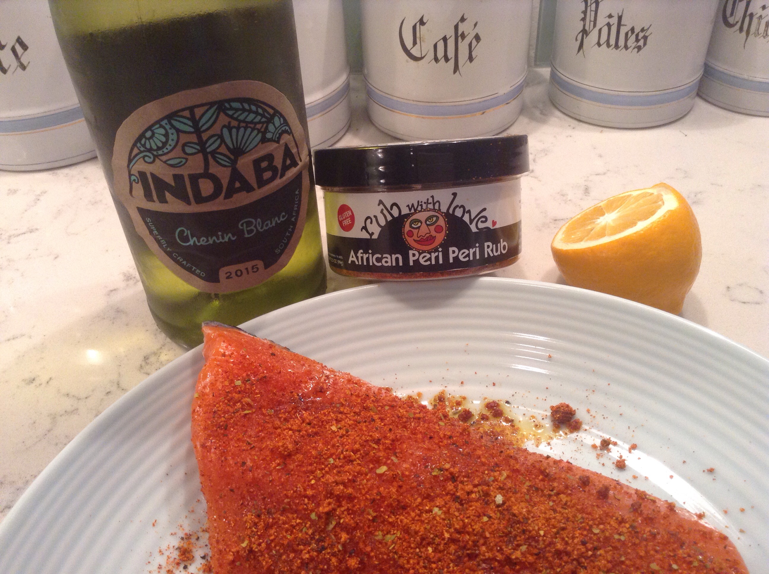 Although we missed to window to compete in their Instagram challenge, we didn’t miss the chance to pair these wines. We paired the Chenin with Salmon rubbed with love: a spice blend of garlic, ancho, paprika, oregano, lemon, chipotle, cayenne and black pepper. After grilling we finished with a bit of lemon butter. I really liked the rub with the salmon but it had more kick than I anticipated. I would go lighter on it the next time for the kids.