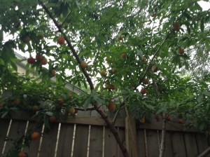 …peaches for free. Well, not quite millions or exactly free but close enough. Our tree is heavy with fruit this year. Since the blossoms became buds, we’ve been throwing out plans for the crop. This weekend we picked our first round.