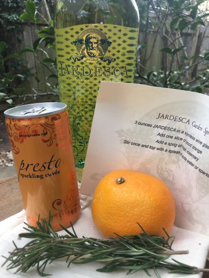 The sample arrived with a recipe and the required ingredients to experiment. (Fantastic marketing, by the way.) Their suggestion of a “Garden Spritz was Jardesca, prosecco, blood orange and rosemary. I also tried it with blood orange and mint, Meyer lemon and a splash of bitters. Next on my list is lemon and lavender. In the spring, peach and basil. They have several fun suggestions for recipes on their site as well.