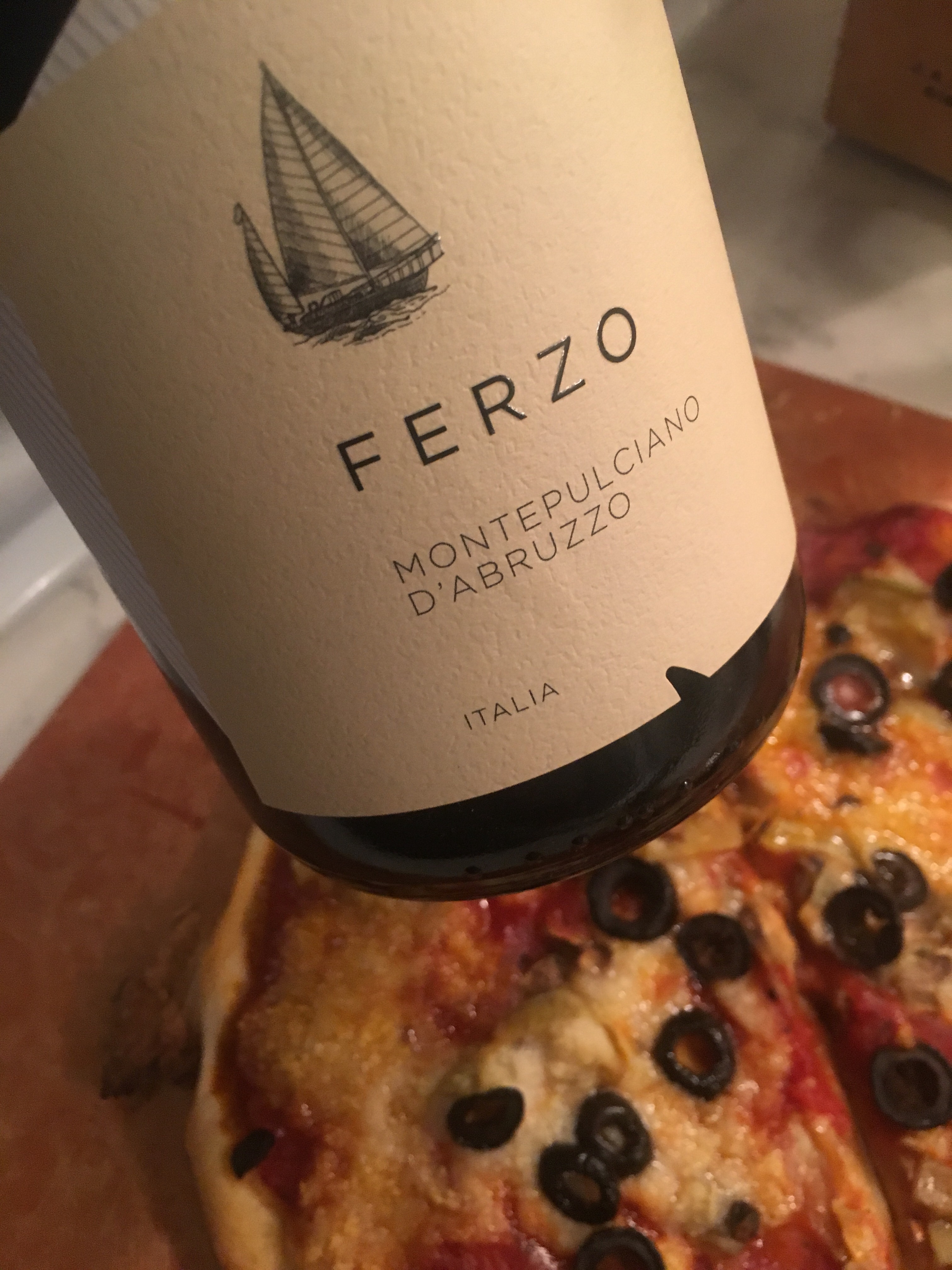 The 2016 Montepulciano d’Abruzzo DOP undergoes fermentation in stainless, gentle pumpovers before it spends 14 months in French oak. It is deep and dark, nearly opaque purple in the glass. Blackberry dominates with cherry, baking spice, and pepper. It is fuller bodied with sturdy tannins. It would pair beautifully with braised meats. We made vegan pizzas with black olives and artichokes.