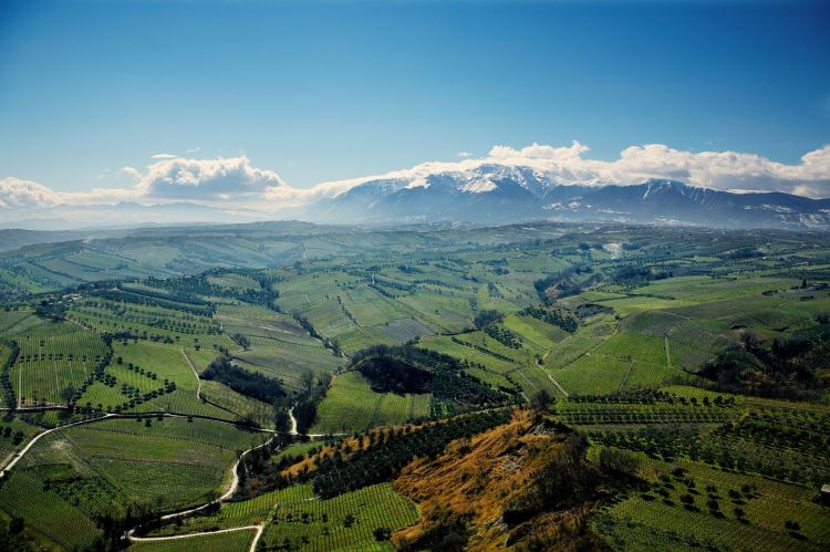On the east coast of central Italy, bordered by the Adriatic Sea and the Apennine Mountains, is the Abruzzo region. The varied topography has provided conditions in which renowned wines have been produced for centuries. The two prominent grapes of the region are Montepulciano d’Abruzzo and Trebbiano d’Abruzzo. While each province of Abruzzo produces wine, most grapes are grown in Chieti. From that tradition comes the wines of Ferzo, named for the Italian word for patches of fabric, when stitched together, create a sail.